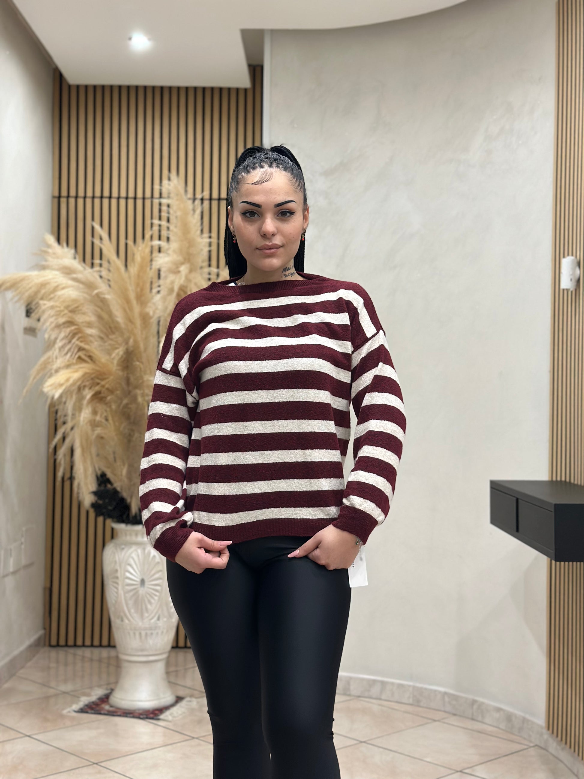 Questo maglioncino a linee di ottima qualità è il capo perfetto per un look elegante e sofisticato. Con i suoi disegni a linee, si adatta perfettamente a qualsiasi occasione e ti fa sentire al top del tuo stile. Realizzato con materiali di alta qualità, garantisce un comfort senza pari e al contempo una resistenza nel tempo.